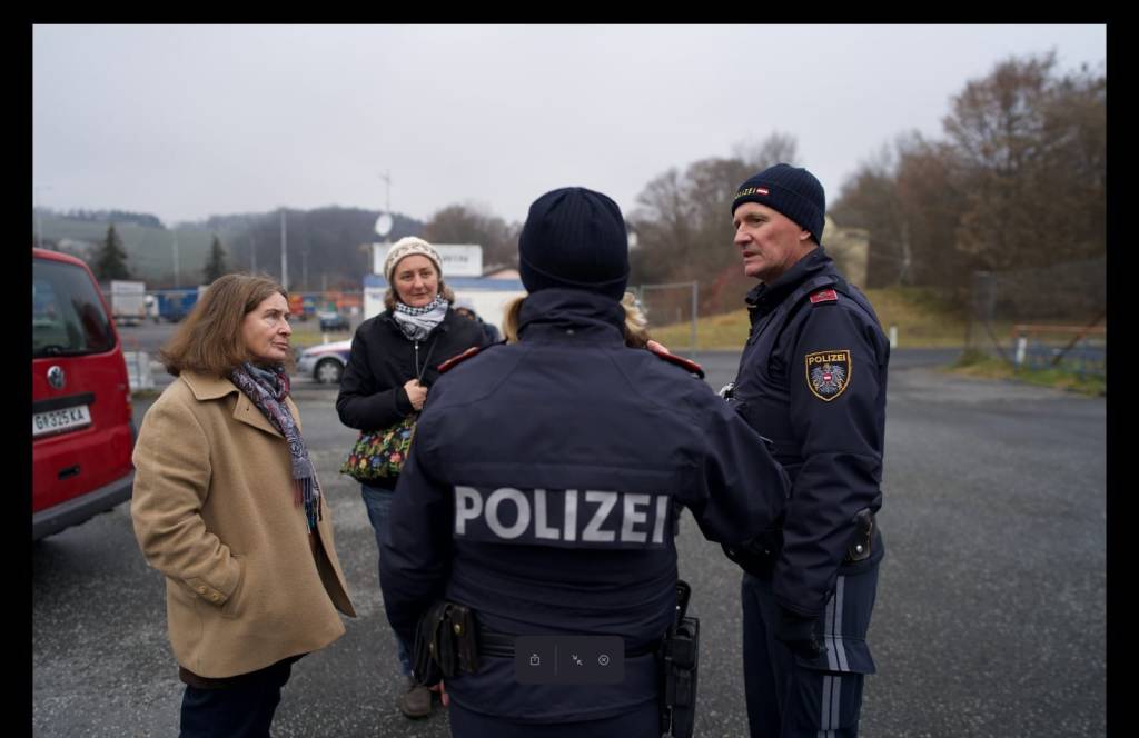 Ein denkwürdiger Tag heute bei den Zelten in Spielfeld: Kundgebung für die Schließung der Wartezone Spielfeld mit special guest Bürgermeisterin Elke Kahr, KPÖ Graz, der die Polizeibeamt:innen auch einen ausführlichen Rundgang durch die Wartezone ermöglichten.
